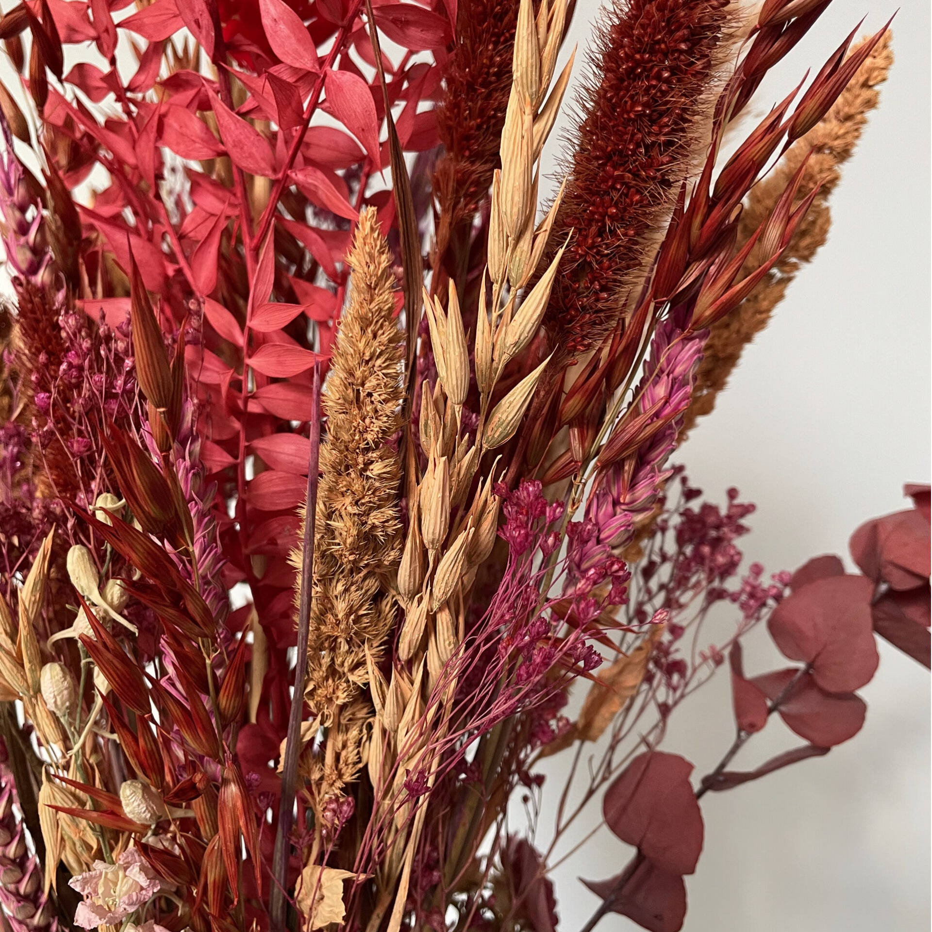 Elk boeket is handgemaakt, uniek en met zorg samengesteld en verpakt. Alle droogbloemendecoraties en vazen worden standaard mooi ingepakt verstuurd.