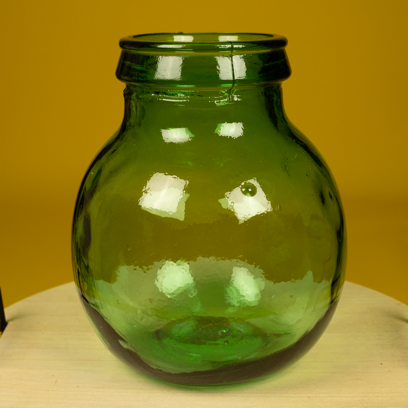 Heel gave zware en massieve bol vaas van glas in een prachtige groene kleur. De vaas is 25 cm hoog.