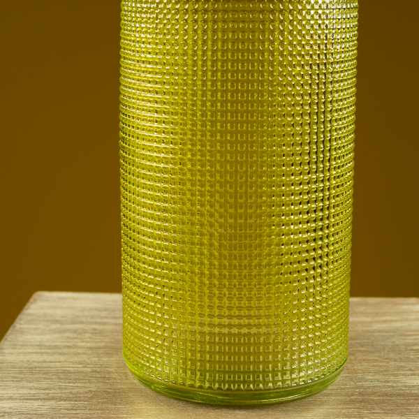 Prachtige grote lichtgroene glasvaas met reliëf met een hoogte van 25 cm.