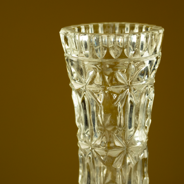 Prachtig kristalvaasje, geschikt voor een wat smaller, klein boeketje. Het vaasje heeft een hoogte van 19,5 cm.