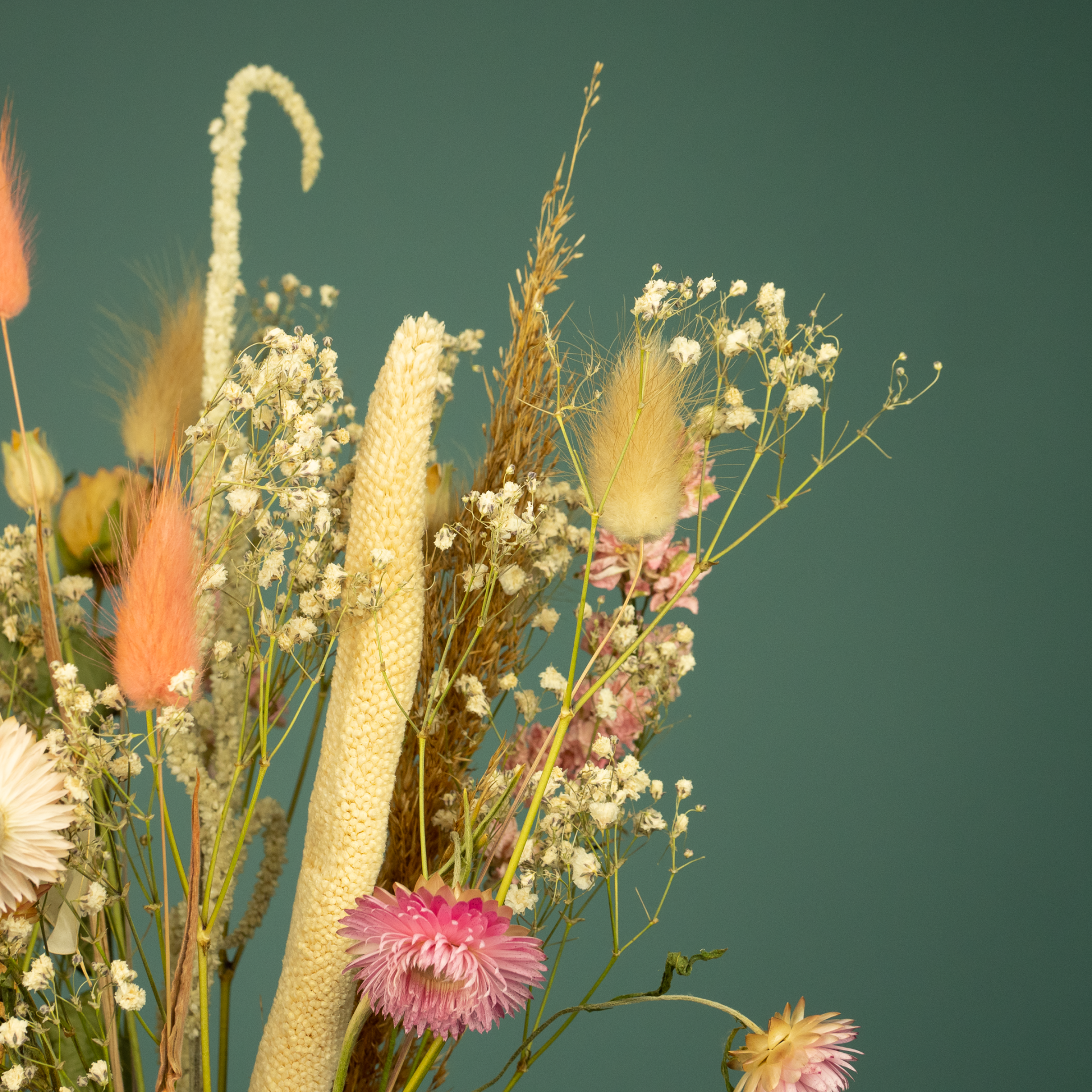 Elk boeket is handgemaakt, uniek en met zorg samengesteld en verpakt. Alle droogbloemendecoraties en vazen worden standaard mooi ingepakt verstuurd.