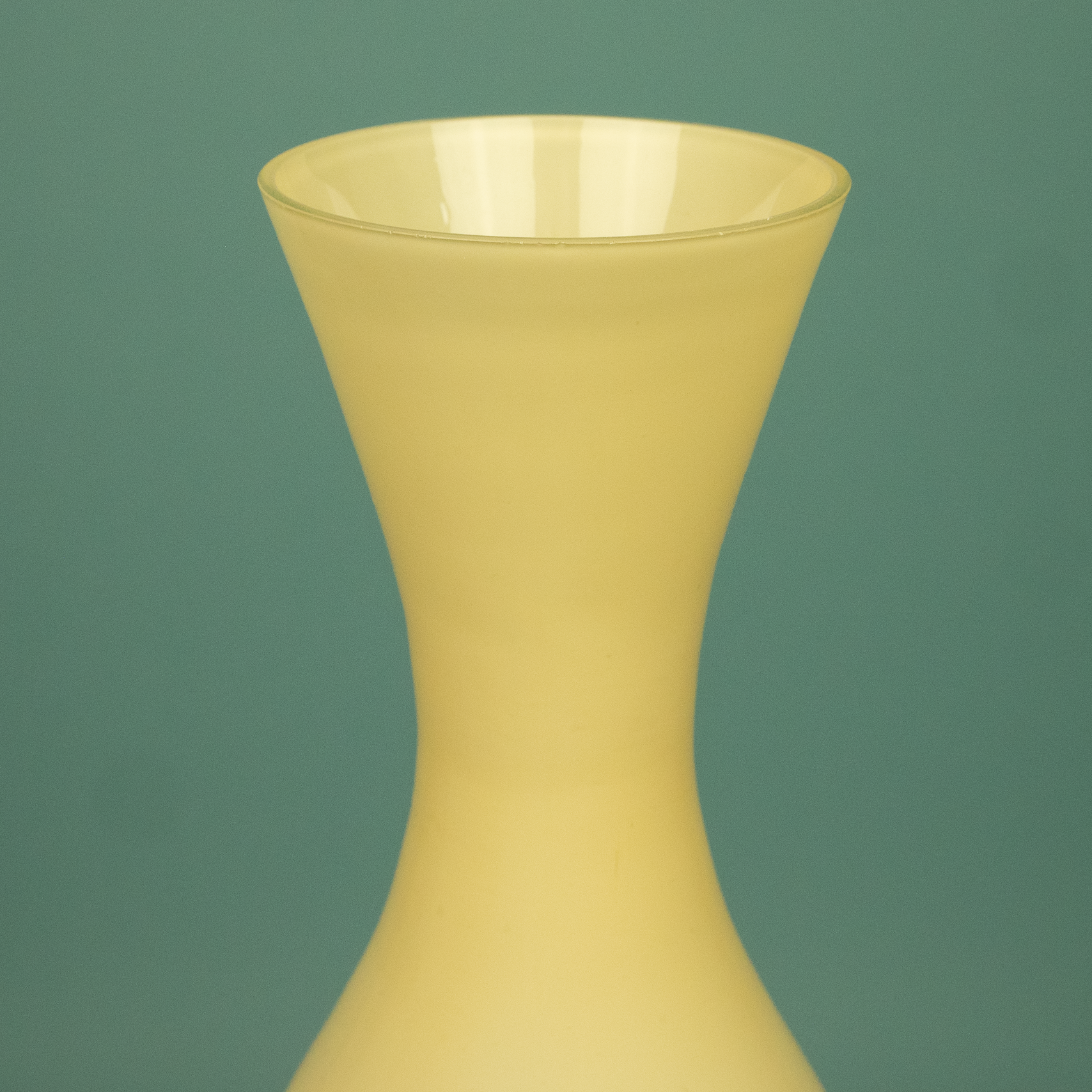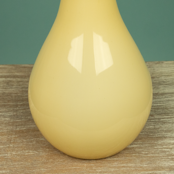 Deze sierlijke crémekleurige tweede-kans glasvaas heeft een hoogte van 25 cm. Perfect voor een middelgroot boeket, zoals Droogboeket Kleurexplosie of Droogboeket Roze Large.