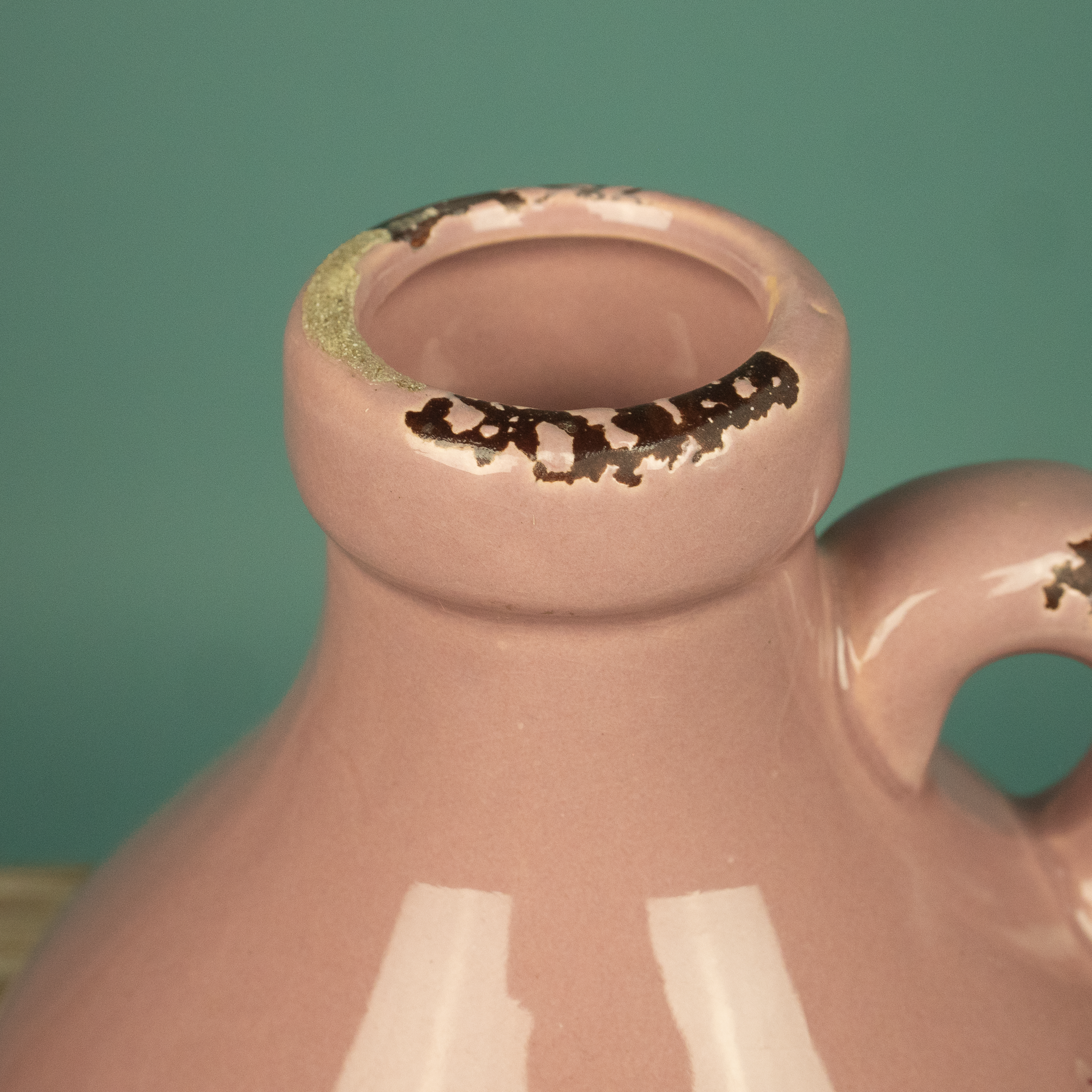Een echte blikvanger, deze lila tweede-kans kan van aardewerk. De kan heeft een hoogte van 20 cm en een smalle opening, dus geschikt voor een wat smaller boeket, zoals bijvoorbeeld Droogboeket Pluk, Droogboeket Terra of Droogboeket Liefde Small.