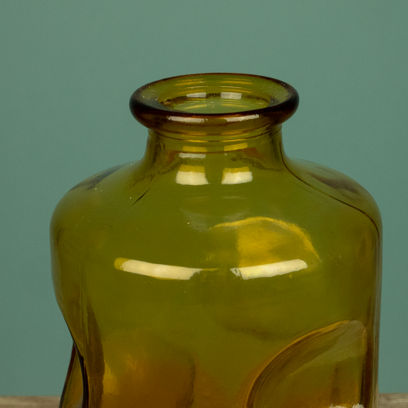 Een prachtig vaasje in roestkleur met een mooi stippenpatroon. Door de smalle opening geschikt voor een wat smaller boeket. De vaas heeft een hoogte van 18,5 cm.