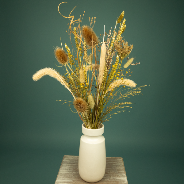 Elk boeket is handgemaakt, uniek en met zorg samengesteld en verpakt. Alle droogbloemendecoraties en vazen worden standaard mooi ingepakt verstuurd.