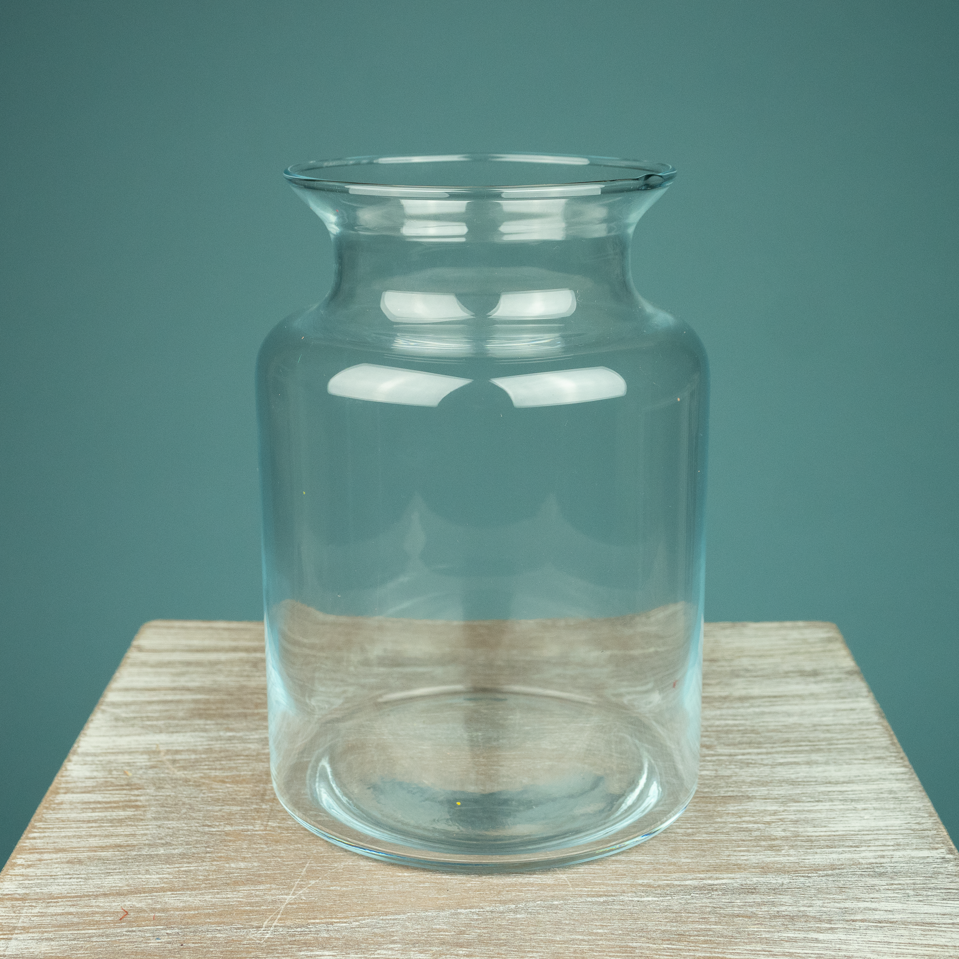 Glasvaas Bose heeft een hoogte van 19,5 cm. Droogboeket Liefde Large is ongeveer 55 cm hoog.