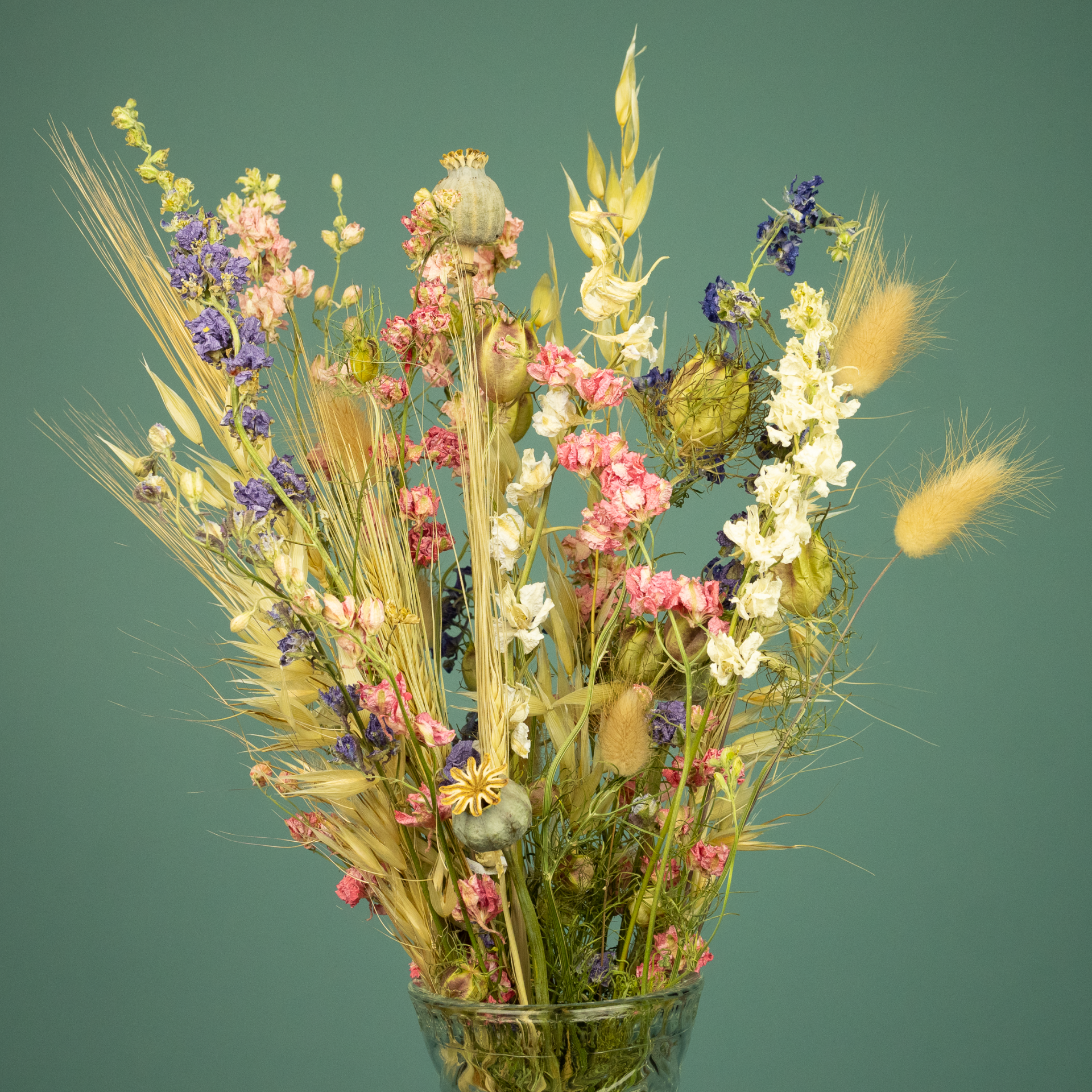 Elk boeket is handgemaakt, uniek en met zorg samengesteld en verpakt. Alle droogbloemendecoraties en vazen worden standaard mooi ingepakt verstuurd.