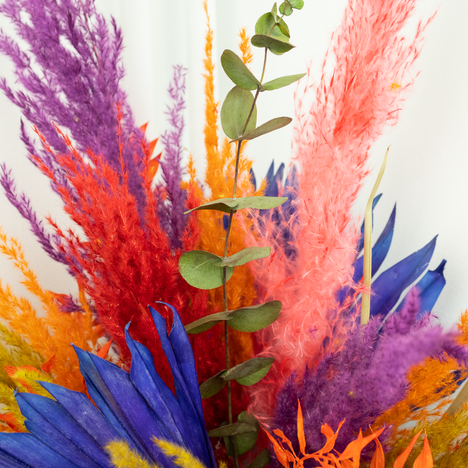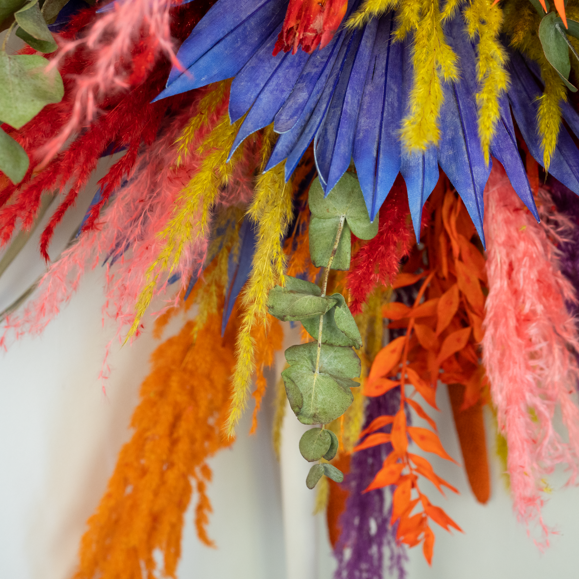 Van direct zonlicht verkleuren de droogbloemen sneller. Daglicht kan geen kwaad, maar je kunt de wanddecoratie beter niet in het volle zonlicht hangen.
